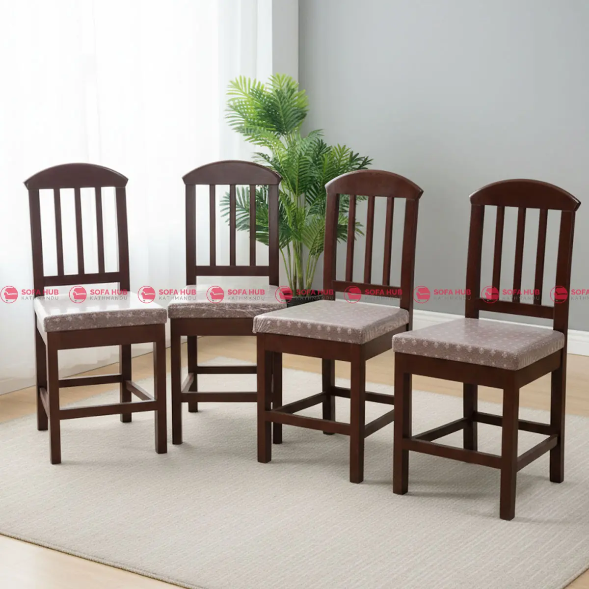 Each chair features ergonomic wooden frames with comfortable cushioned seats, ensuring you enjoy every meal in style and comfort.