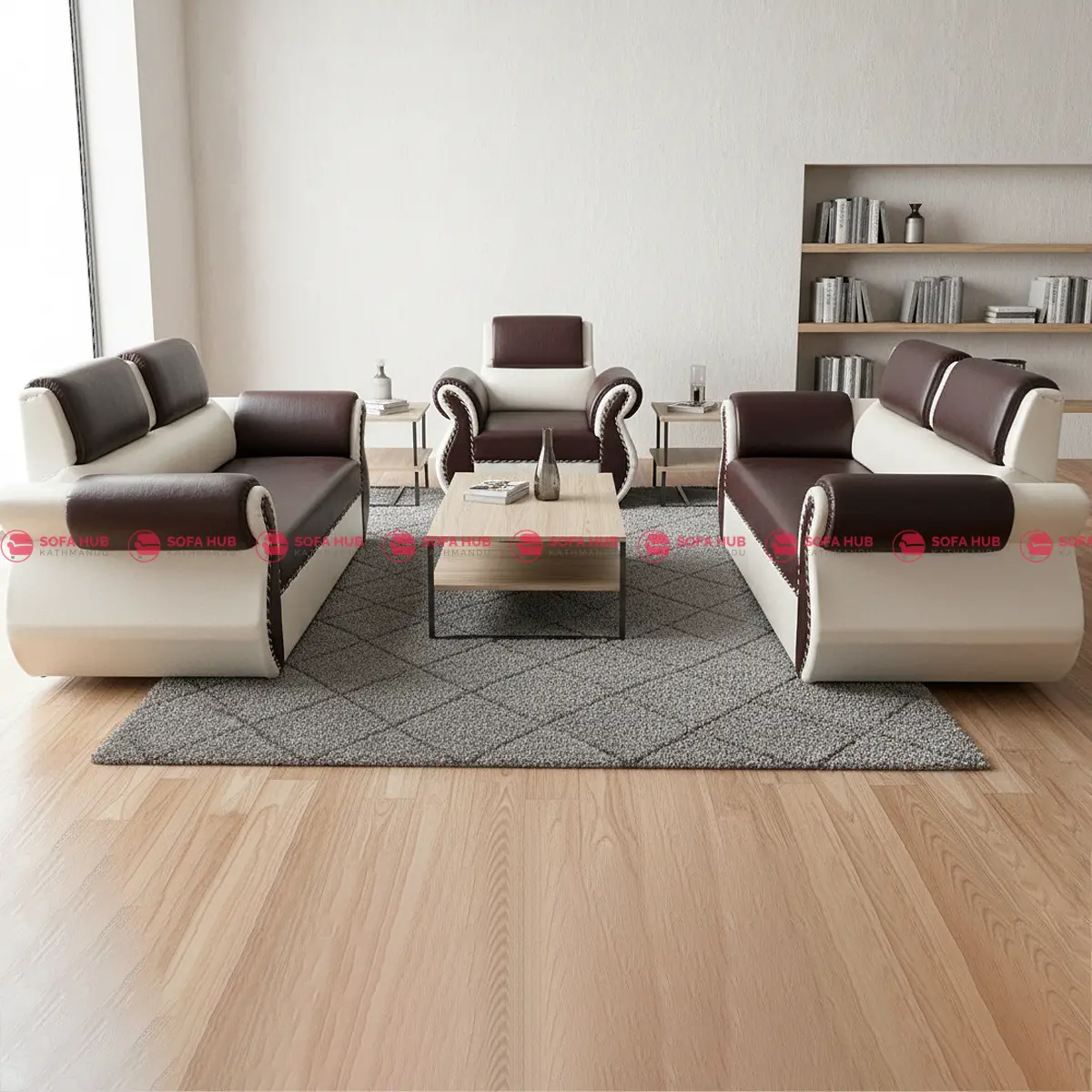 The 221 Design Double-Bag 5-Seater Sofa Set is crafted with premium Reign material, offering exceptional durability, comfort, and a luxurious look. Designed with a double-bag cushion style, it provides superior back support and deep seating comfort for up to five people. Built with a strong wooden frame and high-density foam, this sofa is ideal for modern homes, offices, and lounges. It can also be customized in fabric upholstery upon order, allowing you to match any interior theme with ease.