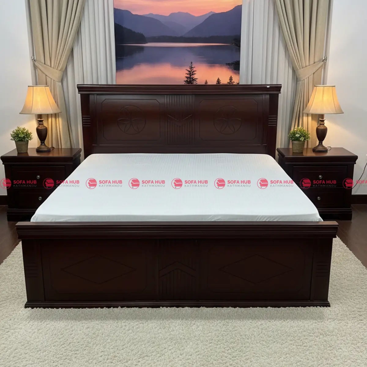 Experience timeless elegance and long-lasting durability with this Royal Sisau Wooden Bed, crafted from premium-quality Sisau hardwood. Its rich walnut finish, hand-crafted patterns, and strong build make it a perfect choice for modern as well as classic bedrooms. The bed includes spacious built-in storage, making it ideal for organizing bedding essentials while saving room space. Designed with a solid headboard and footboard, this bed delivers both beauty and stability, offering a luxury sleeping experience for years.